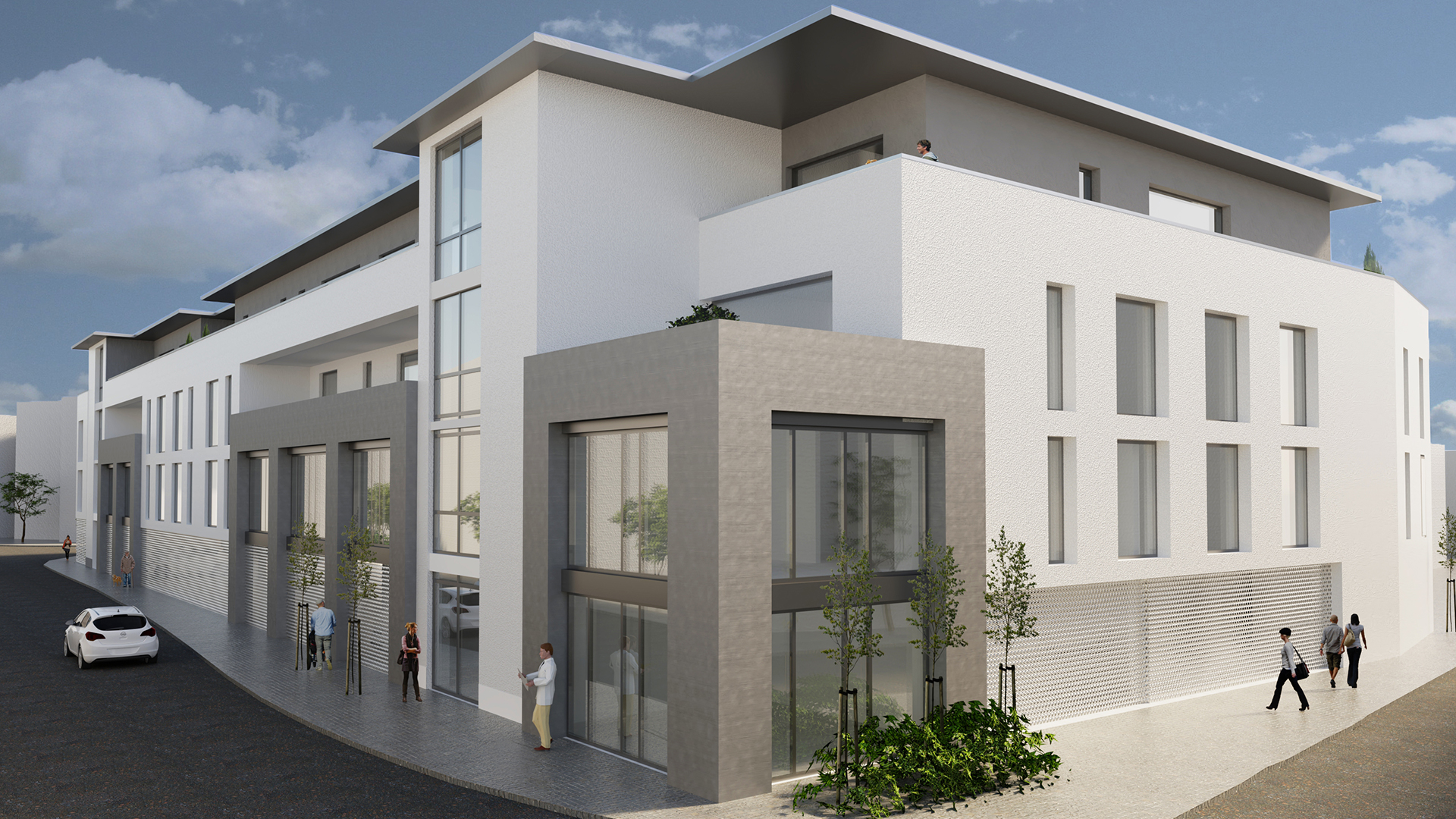 Hier wurden 22 Kleinwohnungen für ambulant betreute Wohngemeinschaften und weitere 14 attraktive Wohnungen in verschiedensten Größen errichtet.
