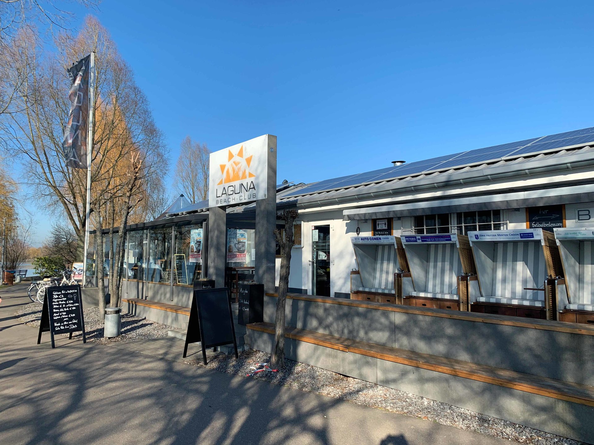 Es verfügt über eine Küche, einen Thekenbereich, Sanitäranlagen und eine großzügige (Außen-)Terrasse mit Seeblick.
